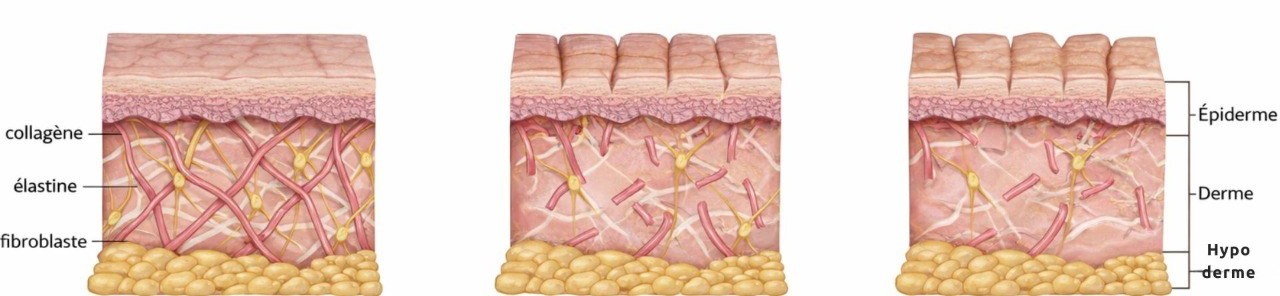 Le collagène perd alors une partie de sa souplesse et devient plus rigide.