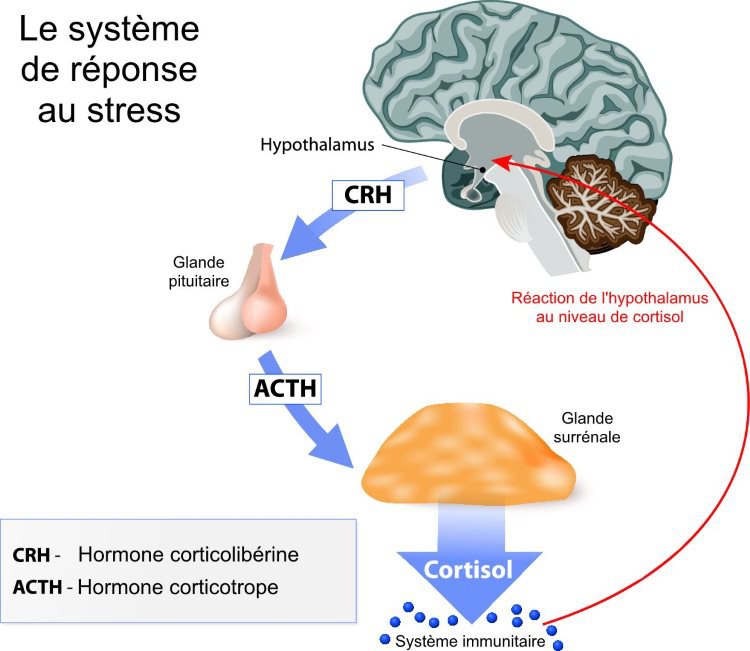 Face à une menace, le corps active ce que l’on appelle l’axe HPA : hypothalamus, hypophyse, glandes surrénales.